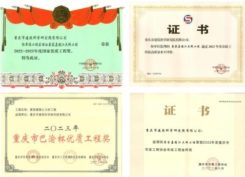 蔡家嘉陵江大橋修建過程中,項目部創(chuàng)新性監(jiān)理工作,建立健全全壽命質(zhì)量控制體系,采用無人機進行項目智慧管理,利用數(shù)據(jù)信息對施工現(xiàn)場進行統(tǒng)一調(diào)配;采用智慧工程——建設(shè)工程協(xié)同管理平臺,將工程項目全生命周期中的信息模型、數(shù)據(jù)信息、管理資料等集合顯示處理,實現(xiàn)全過程協(xié)同管理,顯著提高工作效率;率先實行了二維碼唯一標識見證取樣管理制度,實現(xiàn)每一組試件、每一份報告均可溯源。項目獲評國家優(yōu)質(zhì)工程獎、市政工程最高質(zhì)量水平評價(原國家市政工程金獎)、重慶市市政工程金杯獎、三峽杯優(yōu)質(zhì)結(jié)構(gòu)工程獎、巴渝杯優(yōu)質(zhì)結(jié)構(gòu)工程獎、重慶市智慧工地示范項目。