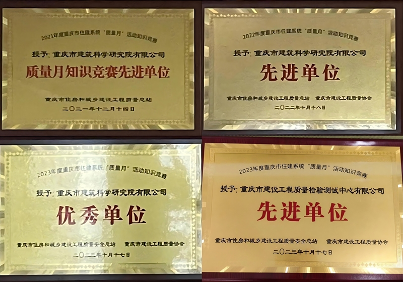 自2021年重慶住建系統第一屆“質量月”知識競賽開展以來,市建科院公司積極參與,2021年、2022年榮獲先進單位稱號,2023年、2024年榮獲優秀單位稱號,子公司榮獲先進單位稱號。連續4年取得質量月知識競賽佳績的背后,是集團公司扎實的技術儲備和對質量矢志不渝的追求。