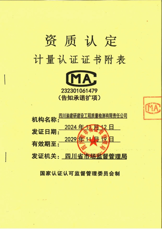 檢驗(yàn)檢測(cè)機(jī)構(gòu)資質(zhì)認(rèn)定(CMA)是檢驗(yàn)檢測(cè)數(shù)據(jù)質(zhì)量保證的生命線和檢驗(yàn)檢測(cè)能力的核心體現(xiàn)。自2023年成功通過(guò)CMA資質(zhì)認(rèn)證復(fù)查換證評(píng)審后,四川渝建研公司聚焦助力成渝地區(qū)雙城經(jīng)濟(jì)圈建設(shè),積極發(fā)揮駐蓉經(jīng)營(yíng)“橋頭堡”作用,始終堅(jiān)持技術(shù)創(chuàng)新、質(zhì)量?jī)?yōu)先戰(zhàn)略,將提升檢測(cè)技術(shù)作為保障建筑工程質(zhì)量的重要基石,不斷加大研發(fā)投入,引進(jìn)先進(jìn)設(shè)備,優(yōu)化檢測(cè)方法,提升檢測(cè)精度和效率。同時(shí),注重人才培養(yǎng)和團(tuán)隊(duì)建設(shè),組建高素質(zhì)、專業(yè)化的檢測(cè)隊(duì)伍,為公司的高質(zhì)量發(fā)展提供了堅(jiān)實(shí)的人才保障。