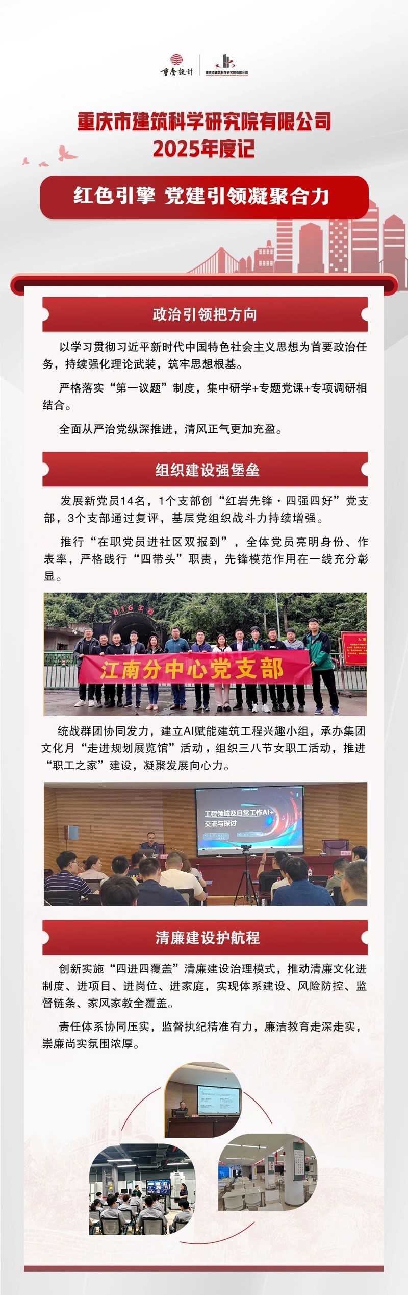 2025年,重慶設計集團市建科院內部融合持續深化,業務布局不斷完善,核心能力穩步增強,風險防線更加牢固,黨建與業務同頻共振,發展基礎堅實穩固。