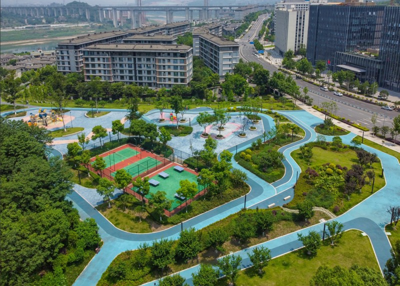 項目位于重慶市兩江新區大竹林街道金州大道與華山北路交叉口,于2022年9月開工,次年4月竣工,占地面積10.2萬平方米,被命名為“鳳棲社區體育文化公園”,公園整體以“島”空間為媒介,棧道串聯為紐帶的設計。定位為“城市綠肺”的社區文化體育公園,打造了“社區會客廳”“童頑匯”“運動匯”“鄰里見面匯”“萌寵匯”等多主題生活場景。